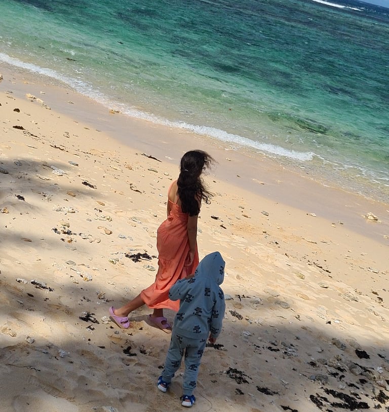 My children, once tethered to the digital screens of iPads, have now discovered a different world outside these confines. In Mauritius, their eyes have widened not to the glare of a device, but to the vibrant hues of nature. Gone are the days of indoor bickering; they are outdoors more than ever, basking in the sun, feeling the wind, and connecting with the earth. Their plates are cleaned out at every meal, not out of obligation, but genuine enjoyment. Their evenings? They aren't spent in front of a glowing screen, but on the beaches at 10 pm, chasing after frogs, hunting for crabs, and spotting little fish under the moonlit sky. Their giggles and excitement on these nocturnal adventures echo the pure, unadulterated joy that this island has brought into their lives.