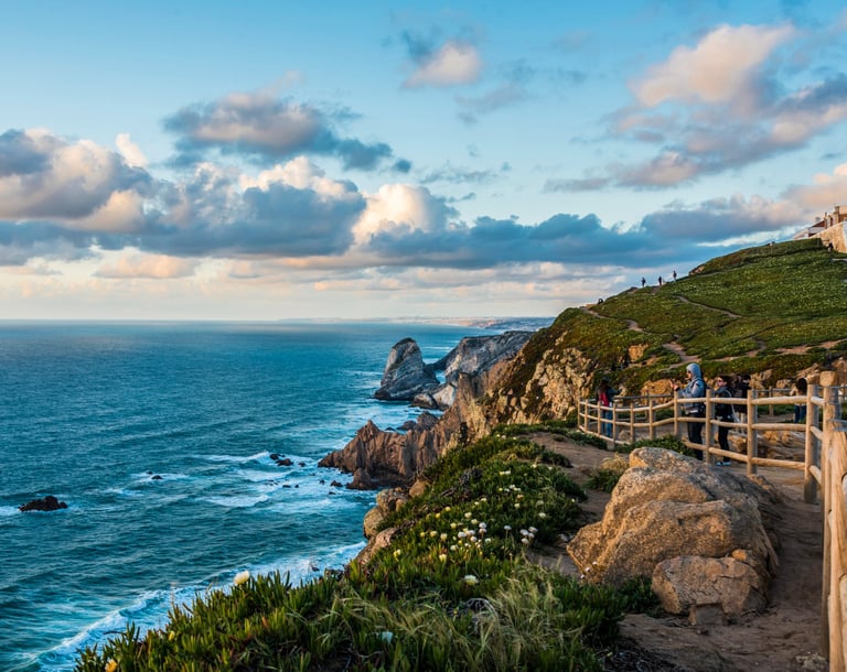 Just a few kilometers west of Sintra is the westernmost point of mainland Europe—Cabo da Roca. The rugged cliffs offer mesmerizing views of the wild Atlantic Ocean, especially enchanting at sunset when the sky seems to melt into the sea.