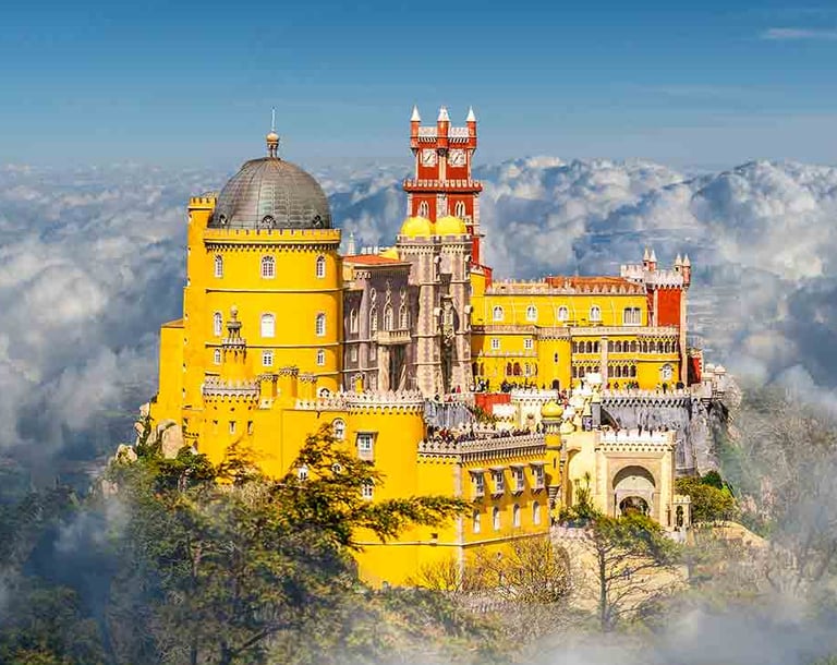 In the heart of Sintra lies the vibrant Pena Palace, an opulent 19th-century Romanticist castle that overlooks the town. King Ferdinand II transformed a ruined monastery into this fairy-tale-like palace, blending Gothic, Renaissance, Moorish, and Manueline architectural styles. The palace's striking colors and decorative battlements leave an indelible mark on every visitor's memory, while its surrounding Pena Park—a sprawling and exotic landscape—invites one to wander and discover hidden treasures.